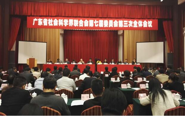 本网讯 2016年3月9日,广东省社会科学界联合会第七届委员会第三次全体会议在广州广东大厦召开。省委宣传部副部长、省社科院党组书记蒋斌出席开幕大会并讲话。省社科联党组成员、专职副主席林有能主持大会。省社科联党委书记、主席王晓、省财政厅副厅长郑贤操、省政协副秘书长杜重年、省委党校副校长苟志效、广东省社会政策研究会黄乐庆常务副会长兼秘书长等出席大会。